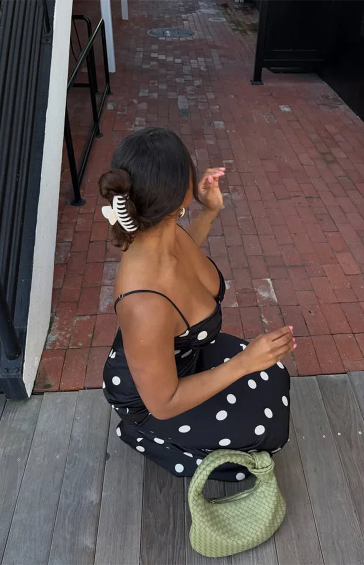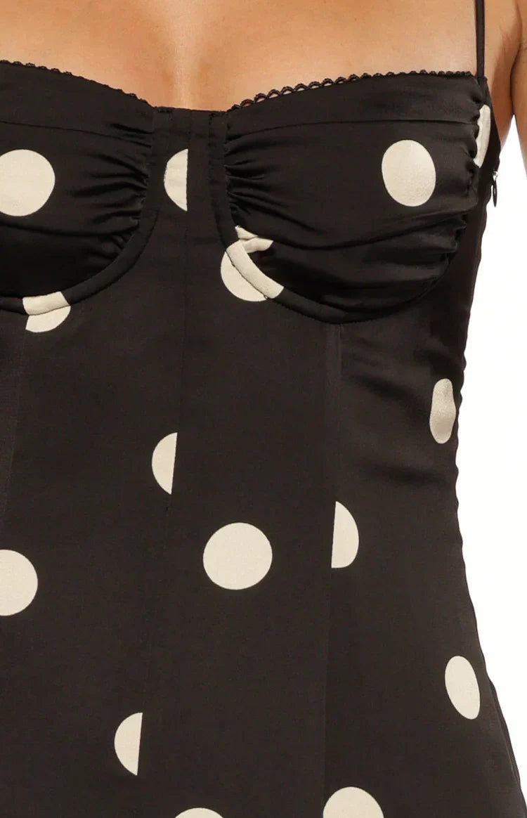 Black Satin Spot Maxi Dress