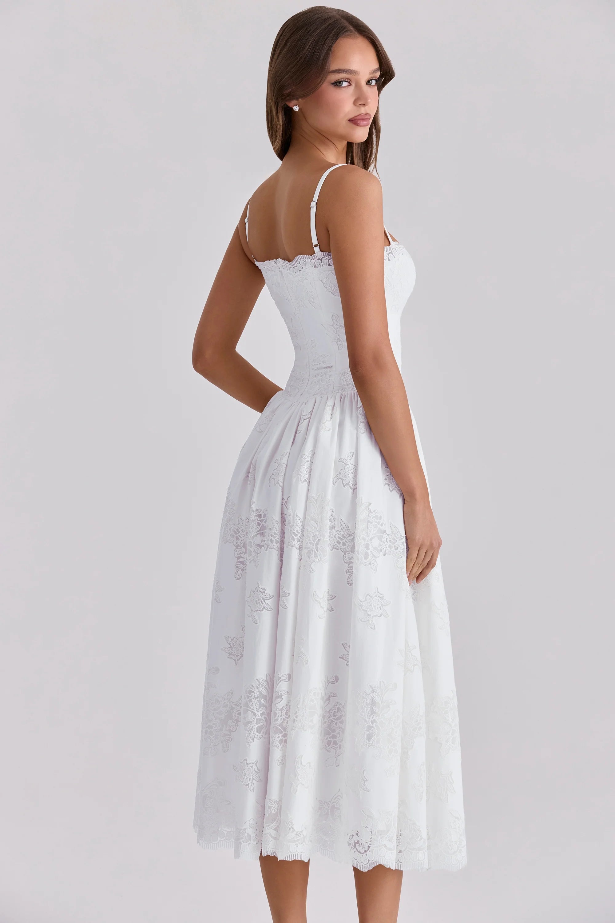 With the most delicate florals and feminine textured detailing, 'Chloe' brings the romance of spring to the forefront. She's specially crafted from a timeless, luxurious white custom lace showcasing a first viewing of our exclusively designed intricate lace. This beautiful custom lace is totally unique to House of CB making 'Chloe' an extra-special piece this season that you'll want to covet.